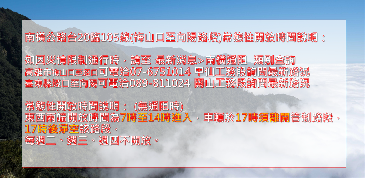 南橫公路路況請至最新消息>南橫通阻查詢